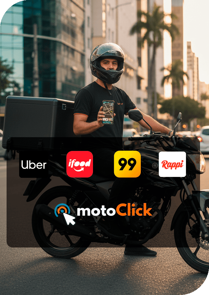 Com a MotoClick, é fácil começar a rodar nos principais aplicativos de entrega e aproveitar toda a liberdade de ser seu próprio chefe.