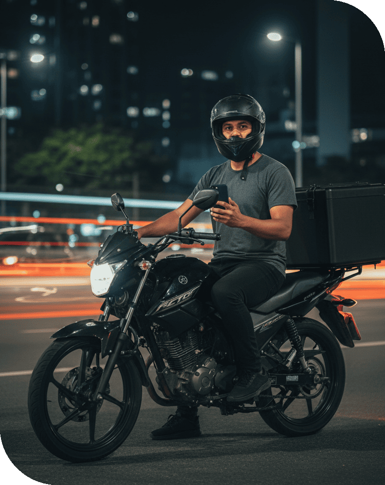- Compatível com todos os apps: iFood, Rappi, 99Entrega, Loggi e outros.